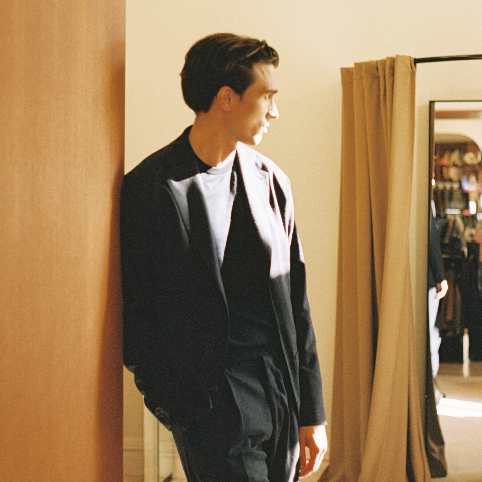 Furthermore, the trouser is easily combined with most pieces in your wardrobe. We like to wear it as seen with a light blue denim shirt or simply wear them with a brown flannel jacket and a piece of knitwear. The mate texture of the fabric makes the suit highly versatile and easily split up into separates. The trousers look great with earth tones and darker colors on top, such as black and shades of grey. But also with all shades of brown and beige!